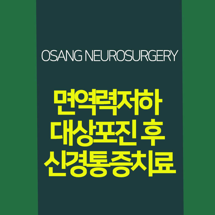 면역력저하 대상포진 후 신경통증치료 면역력이 저하된 상황에서 대상포진으로 인한 신경통증은 심각한 문제로 다가올 수 있습니다. 이때 신경외과 전문의를 찾아 상담