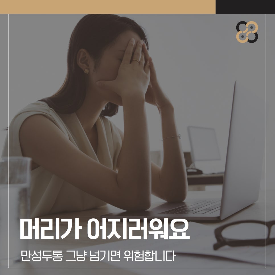 만성두통이라고 넘기지 마세요 머리가 어지러우며 아프고 어지러운 것만으로도 일상 생활에 큰 영향을 미칠 수 있습니다. 특히 두통이 지속되고, 만성화된 경우에는